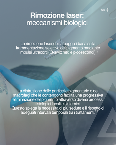 La rimozione laser interviene rompendo questo equilibrio attraverso la frammentazione selettiva delle particelle pigmentarie, ma l’eliminazione finale resta affidata ai normali processi biologici dell’organismo.